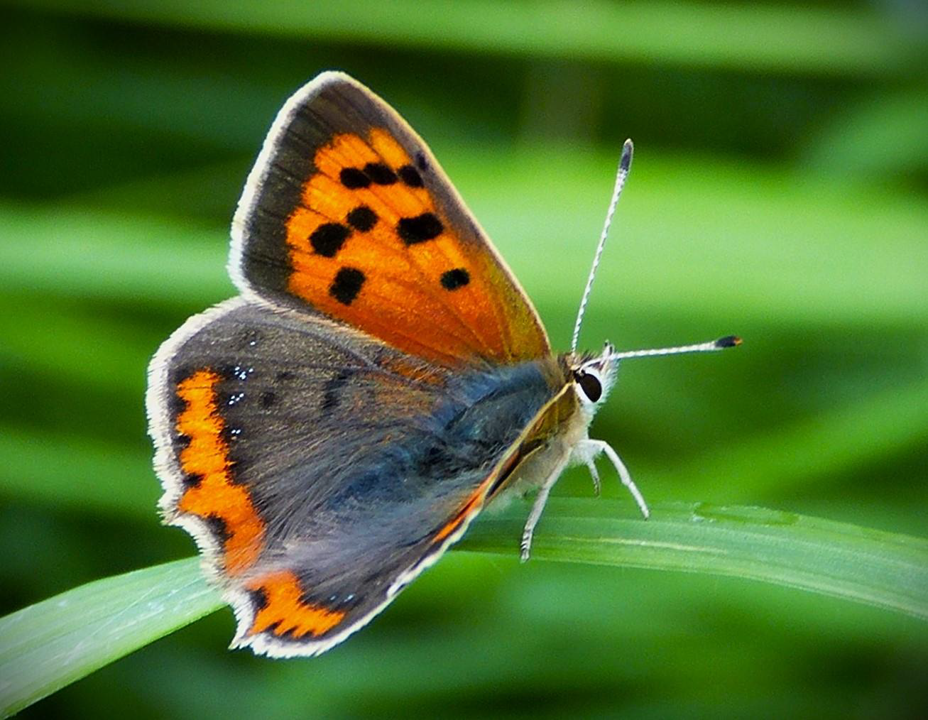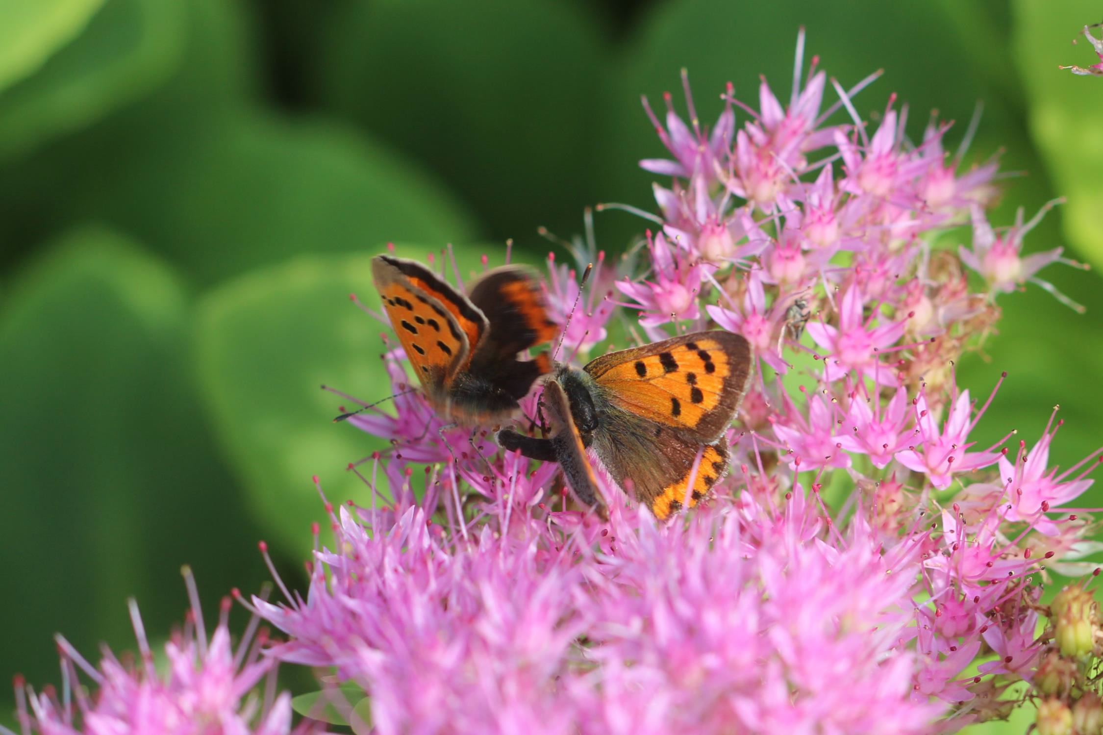Opmerkingen van de jury: Compositie is moeilijk, bovenste vlinder is mooi in beeld, bij de onderste is spijtig genoeg het kopje niet zichtbaar, gebruik ook hoge diafragma, lager diafragmagetal om achtergrond beter te blurren en minder storend te maken.