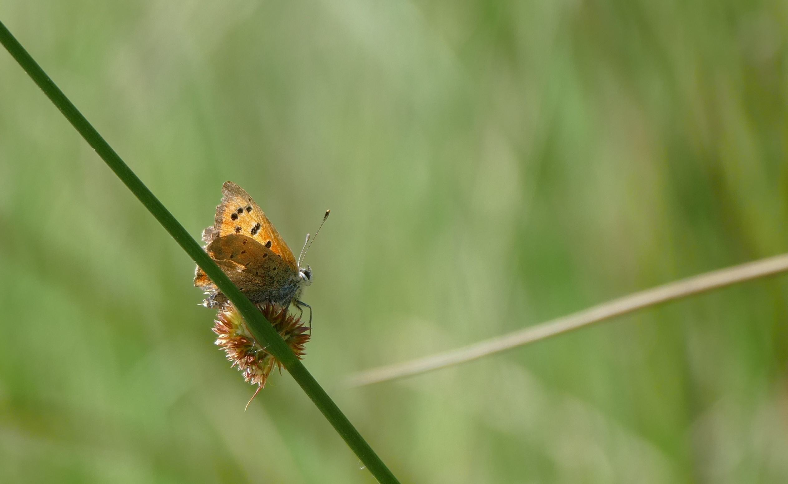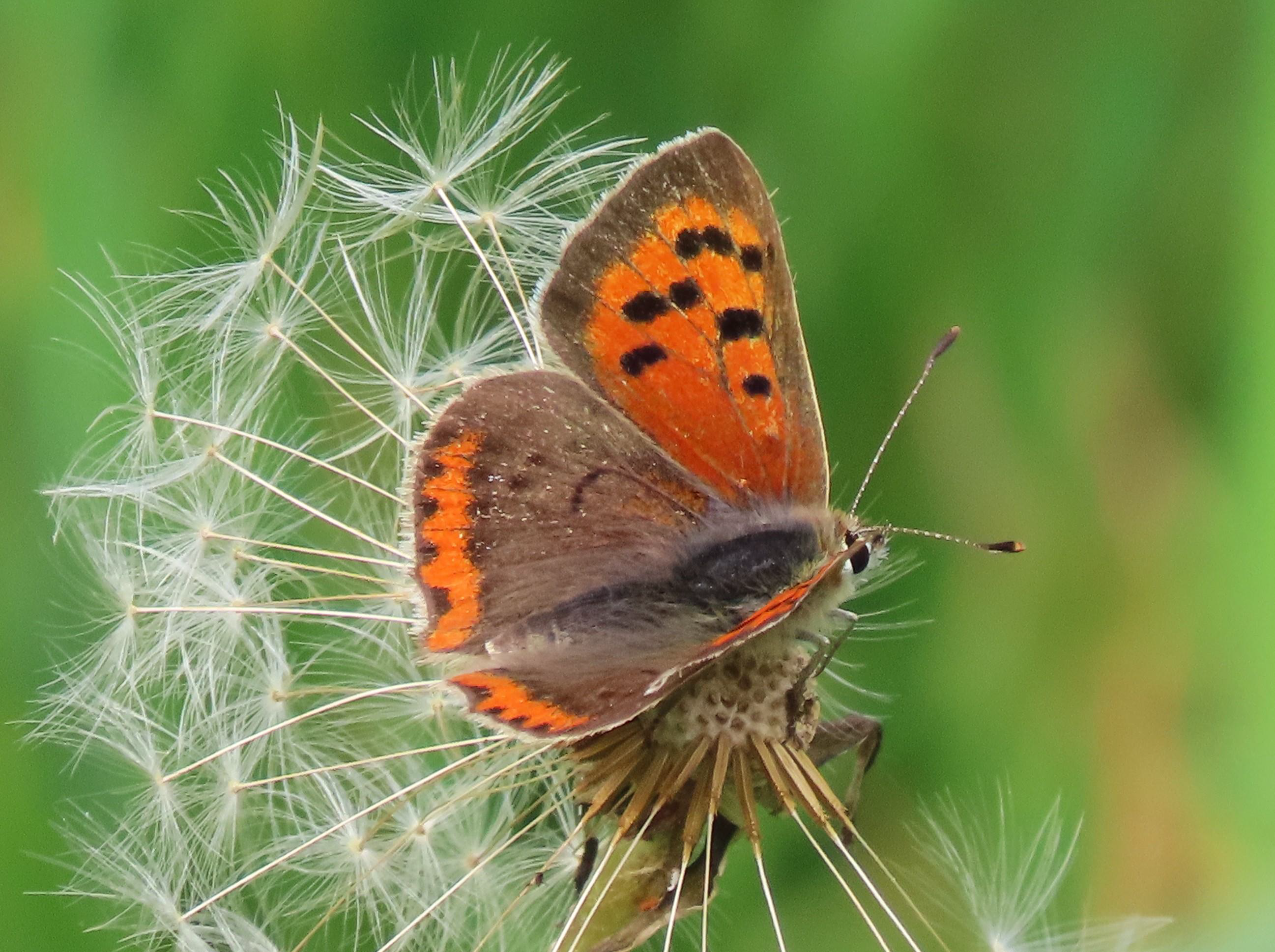 Opmerkingen van de jury: Foto die meer ruimte verdiende, mogelijk mooie compositie met paardenbloem, camera verder van vlinder brengen en kijken hoe pluisjes verder kunnen worden opgepakt in de compositie.