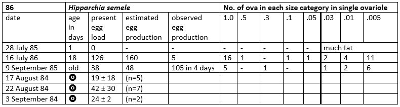 Table 86-1a. Sequential dissections of females from Hoge Veluwe in 1984