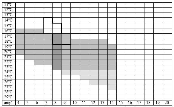 Fig. 70-3. Lasiommata megera, climate matrix, heat-sums 700°d (2nd generation) - 2200°d.