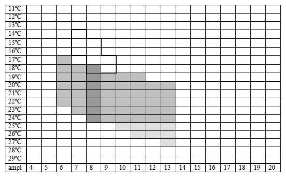 Fig. 3-3. Thymelicus acteon, climate matrix, heat-sums 900 - 2300°d.
