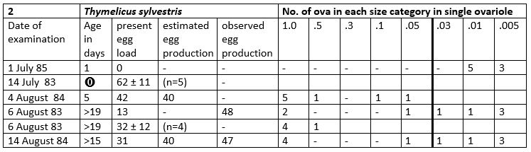 1 July: hatched, egg load: 8 very small eggs in the ovariole