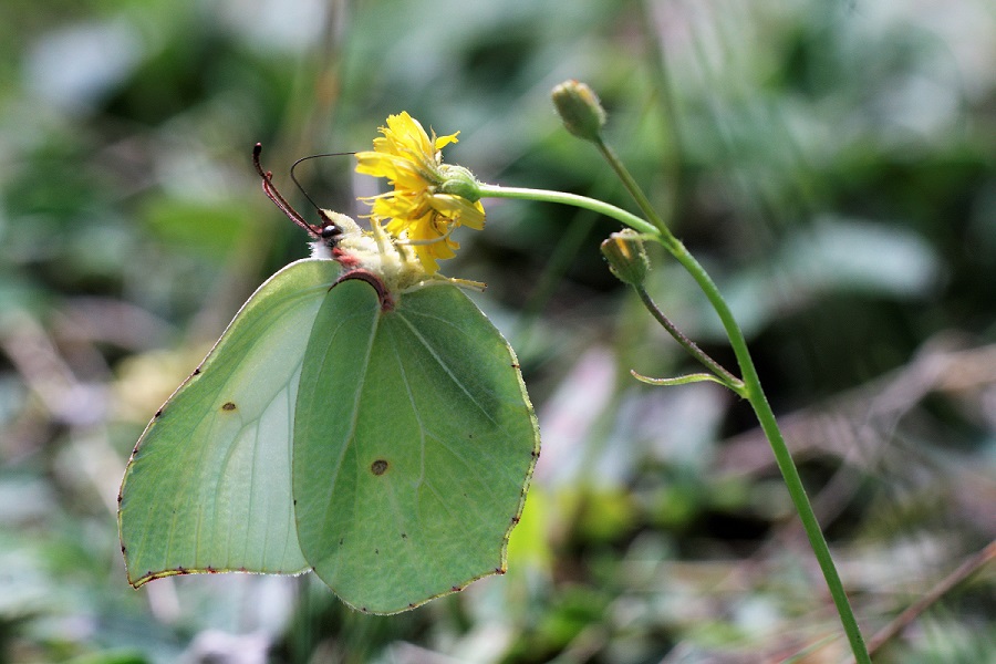 The brimstone (Gonepteryx rhamni) is seen most of the year, though there is only one generation per year.